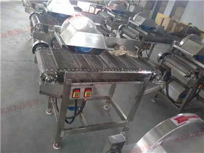 6.振動(dòng)布料:清洗完的菜品經(jīng)過(guò)一臺(tái)高頻振動(dòng)的設(shè)備,去除表面的游離水。把蔬菜更好的布料到風(fēng)干機(jī)了,布料均勻吹干效果會(huì)更好。