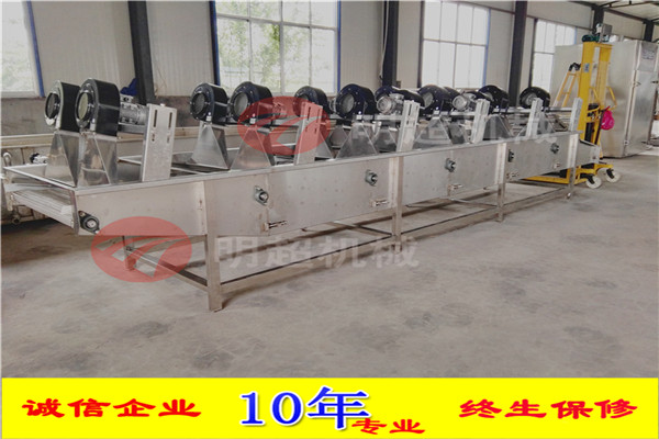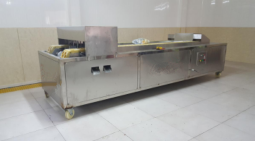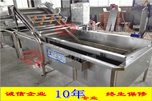 開始將沙果投入到設(shè)備里面浸泡,浸泡1小時,然后通過網(wǎng)帶輸送到殺青機里面,形成流水線。整機采用sus304不銹鋼制作,電機和鼓風機除外。網(wǎng)帶速度可調(diào),水可循環(huán)利用