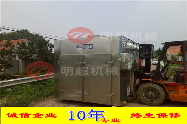 沙果干瀝水后,需要人工將沙果干放入烤盤后,再放入烘車上面,然后關(guān)閉烘干房門,第壹次烘干需要調(diào)試控制器,將烘干溫度和烘干時間,排濕時間調(diào)試好后,以后再烘干,就不需要調(diào)試了,采用192盤烘干房,烤盤尺寸:640*460*45mm,設(shè)備尺寸:4500*2400*2700mm,功率:72kw【實際用電量24kw】加熱方式為電加熱,采用數(shù)控數(shù)顯,風機采用全鋁,保溫采用硅酸鋁,厚度為8cm