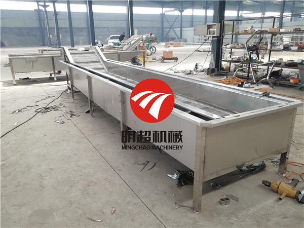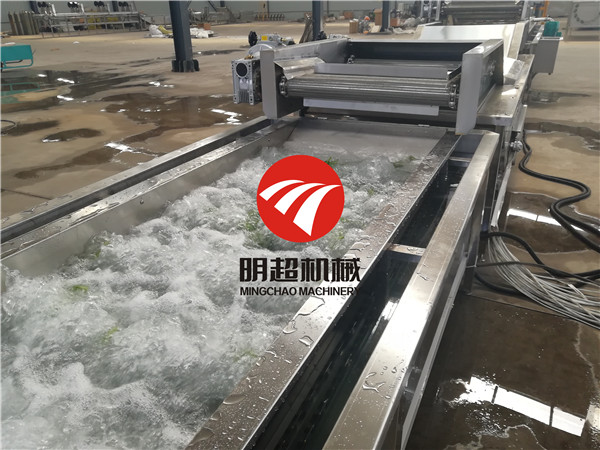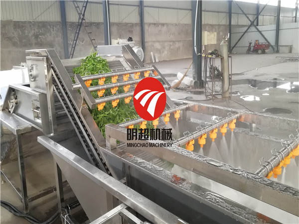 凈菜加工生產線由挑選機→清洗,去農殘,精洗,漂燙,護色,冷卻,瀝水,切菜,包裝,輸送,烘干等組成,可與其它果蔬加工設備配套進行深加工。這種生產線操作方便,產量高,是凈菜加工生產線設備。