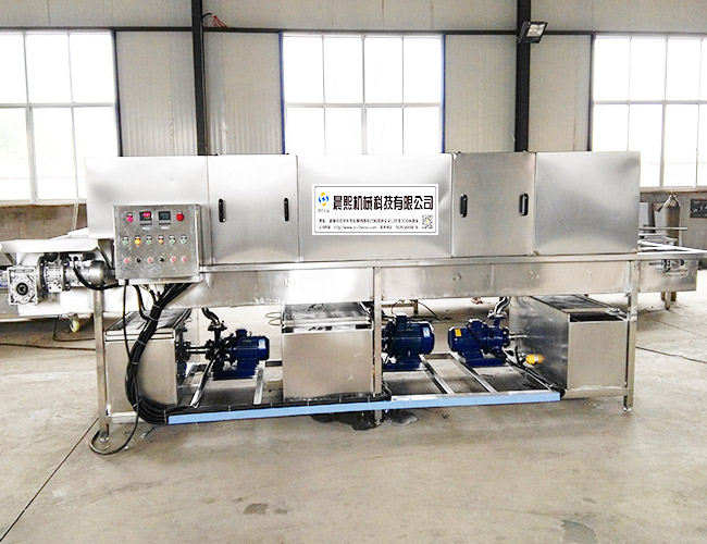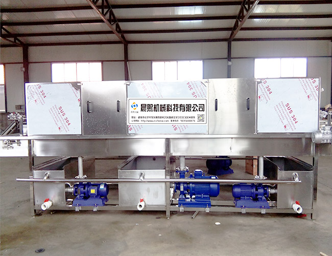 工作流程:入料--除渣--預(yù)洗熱水 --熱水清洗-- 殺菌 --烘干